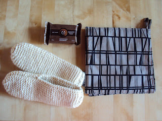 16.10. kävin pitkästä aikaa ystävälläni Kaisalla ja vaihdettiin 1.5 vuoden ajalta joulu- ja synttärilahjoja, köh köh. Kaisa oli tehnyt mulle aivan ihanan kauppakassin, samalla kaavalla joita ystäväni Kaisu on tehnyt, mä sitten tykkään tästä mallista. Se on "muovikassi" mutta kangasversio tietysti. Oikein pirtsakka, se on päässyt jo monta kertaa ostoskoriin mukaan. On kiva kun voi vaihdella kauppakassiakin eikä tartte aina sillä samalla mennä :) Sain mä sitten neulotut tossut, patalaput ja ihanaa saippuaa myös, kiitos Kaisa, kohta nähdään ;D